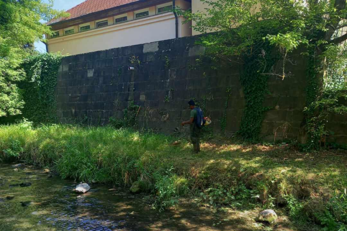 Munkához láttak a Városgondozás dolgozói a patakmedernél.
