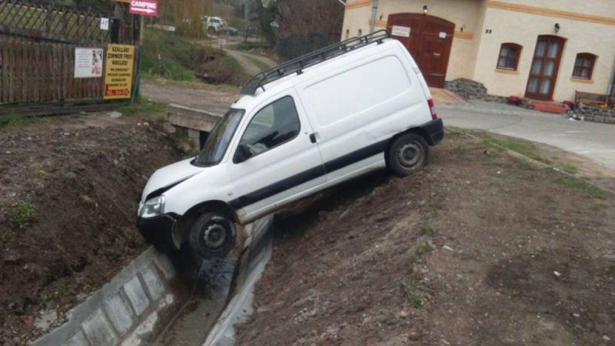 Hogy pontosan miért végezte az árokban, inkább nem találgatnánk, elég baja lehet így is az autósnak.