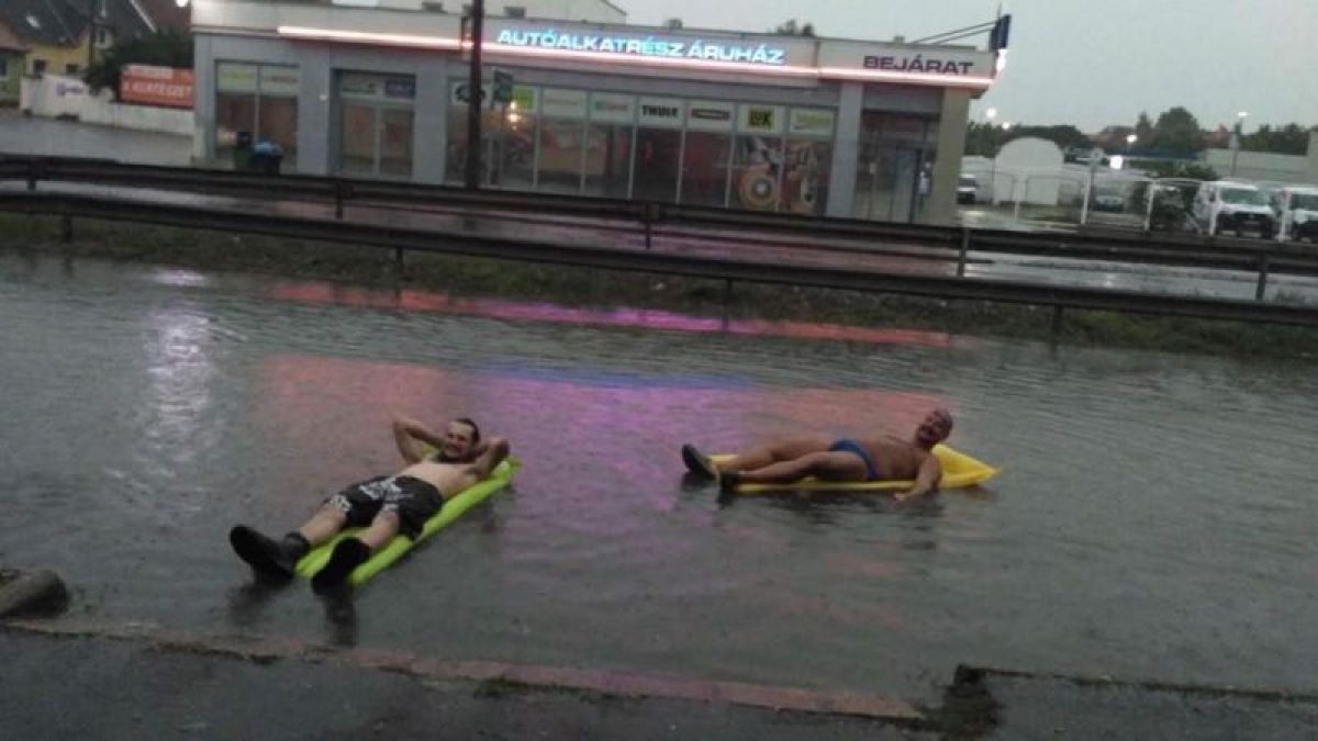 Az általunk működtetett Egerben láttam, hallottam Facebook-csoportba töltötték fel a lenti képet, amelyen két egri férfi a nagy vihar után is megtalálta, hogyan lehet kihozni az egészből a maximumot. Ha eredeti a fotó, akkor egy nagy pacsi nekik. Ha Photoshop, akkor is röhögtünk egy jót. :-)))))))