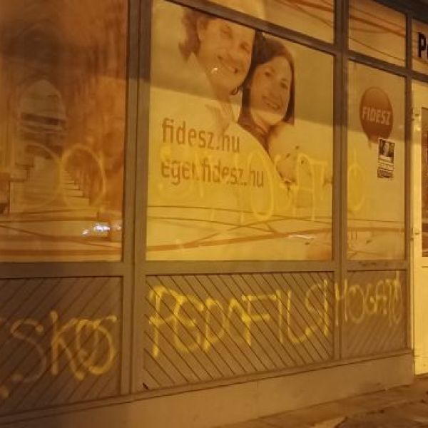 Pedofilsimogató Fidesz - festékkel fújták le az egri Polgárok Házát