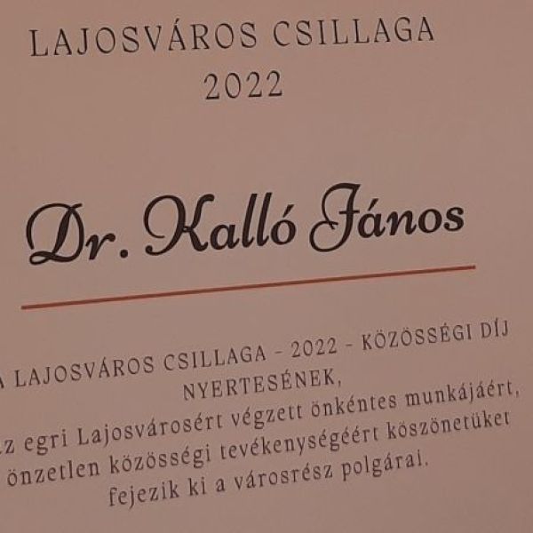 Dr. Kalló János lett Lajosváros Csillaga