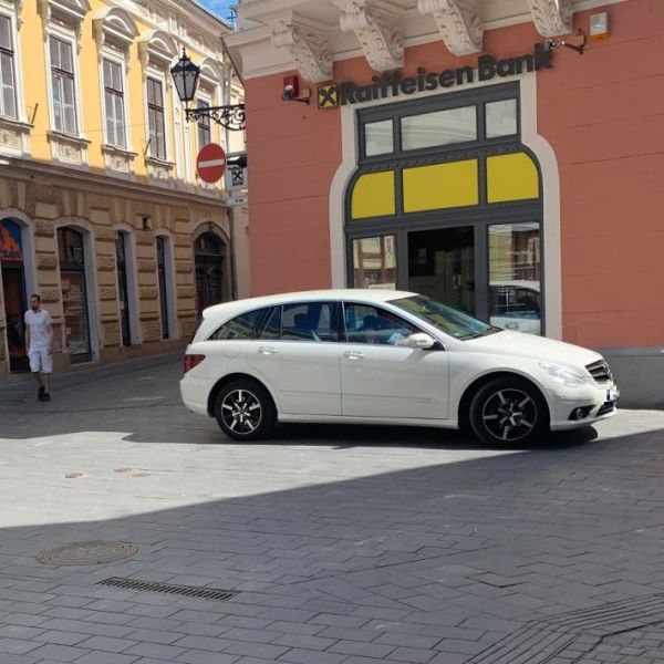 FRISSÍTÉS (06. 06.): Cikkünk megjelenése után kapcsolatba lépett velünk a fényképen megörökített autó gazdája. "Nagyon súlyos politraumatizált mozgássérült vagyok. A Raiffeisen a számlavezető bankom, megközelíteni csak abban a parkolási formában tudom, ami a fotón látszik. Rendszeresen parkolok ott, és sem rendőr, sem a közterület-felü...