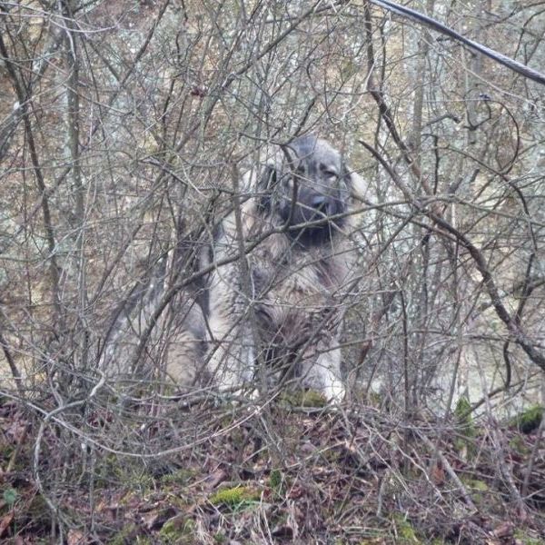 A kaukázusi kutya a falon lecsúszva egy hat méter magas párkányon rekedt, a speciális mentők a nagytestű állatot emelőkosárral tudták lehozni.