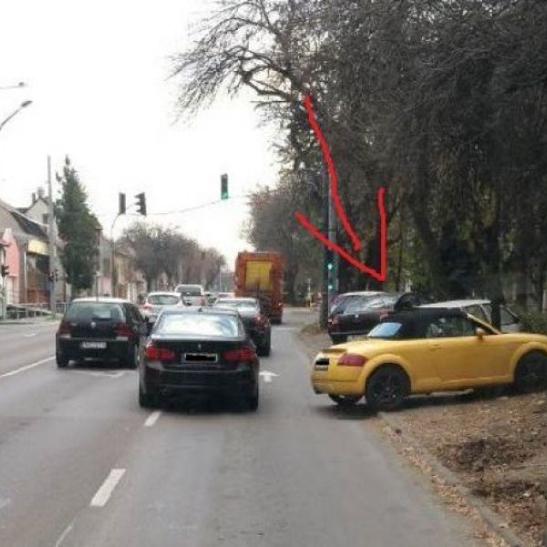 Sokáig gondolkodtunk, mivel is lehetne megvédeni ezt az autóst, aki a Mátyás király úton úgy gondolta, hogy jól van az úgy, minek tovább bíbelődni a parkolással. Semmi értelmes nem jutott eszünkbe, de ha valaki ki tudja őt magyarázni, hát hajrá. Netán műszaki problémái voltak, de akkor hol az elakadásjelző?