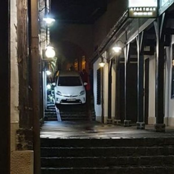 Az Egri Ügyek számolt be róla először, hogy péntek este egy Toyota Yaris tévedésből a Dobó utcából hajtott be a Céhmesterek udvarába Egerben, azonban fennakadt a lépcsősoron. Hogy miért kanyarodott...