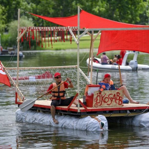 A csapatok a pillepalackokból maguk által készített hajóikkal Kisköréig eveznek a ...