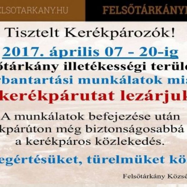 Felújítási munkák miatt a felsőtárkányi kerékpárutat lezárják