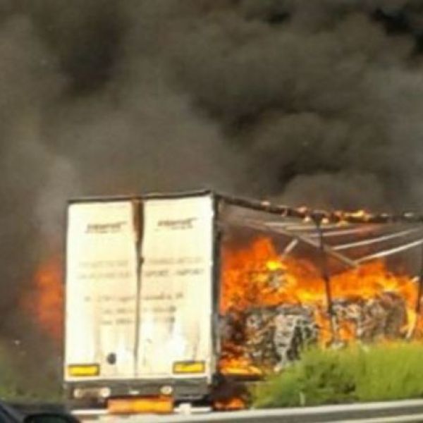 Teljes egészében ég egy papírt és elektronikai alkatrészeket szállító kamion az M3-as autópálya 84-es kilométerszelvényénél, Karácsond térségében. A jármű a Miskolc felé vezető oldalról szakította...