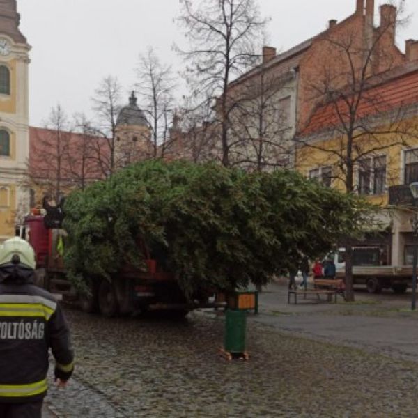 Gyöngyösön a tűzoltók is segítették a karácsonyfa-állítást – FOTÓK