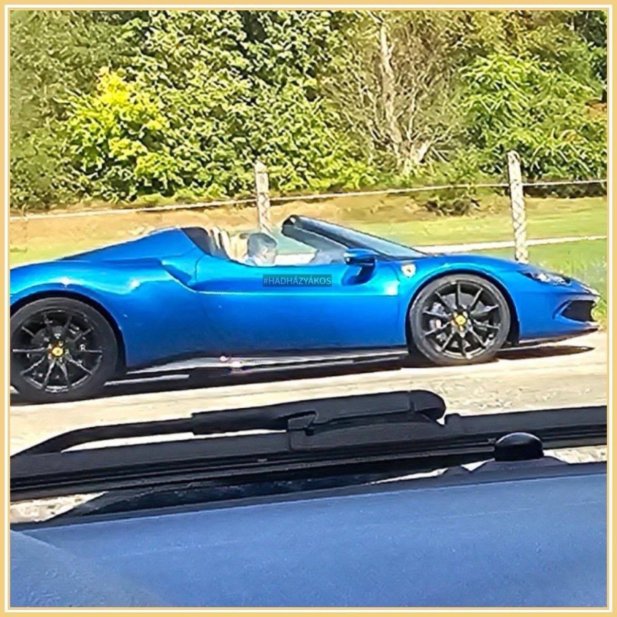 Hadházy Ákos vasárnap reggel osztott meg fotókat a Facebook-oldalán egy azúrkék Ferrari 296 GTS-ről, amelynek becsült értéke 140–180 millió forint. A képeken egy, Mészáros Lőrincre erősen hasonlító férfi ül az autóban, bár az arca nem kivehető teljesen.