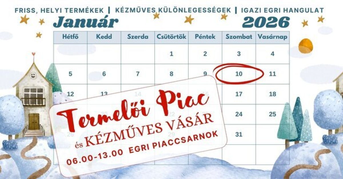 2026. január 10. 06:00 - 13:00 - Katona téri piac, Eger 3300, Katona tér 2.