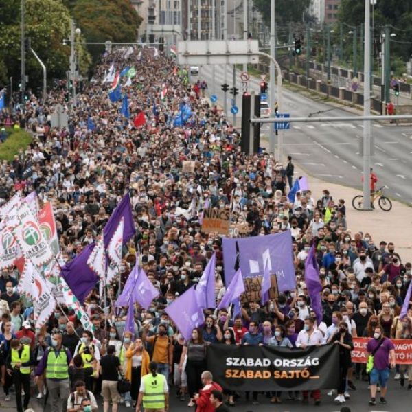 Több ezren tüntettek Budapesten az Index szétverése miatt
