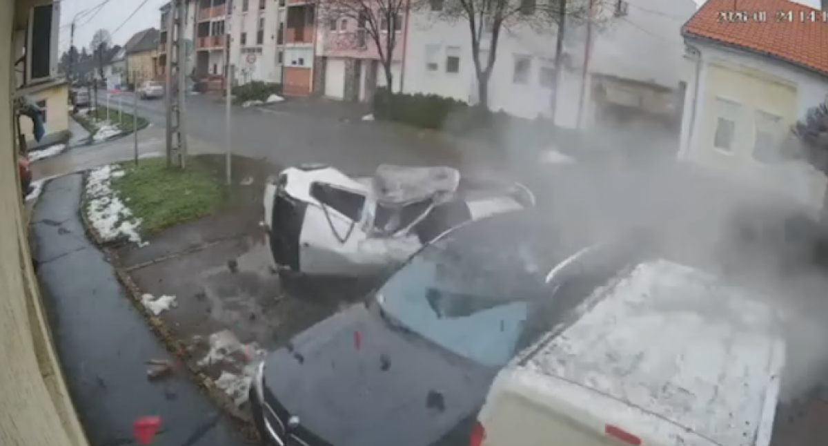Egy fekete autó nagy sebességgel száguldott végig a Deák Ferenc utcán, és csak a szerencsén múlt, hogy nem ütközött össze egy másik, épp kiforduló járművel. A sofőr ezután az út szélén parkoló autóknak csapódott: az első kocsit teljesen összetörte, majd a levegőben megpördülve átrepült két másik parkoló jármű fölött.