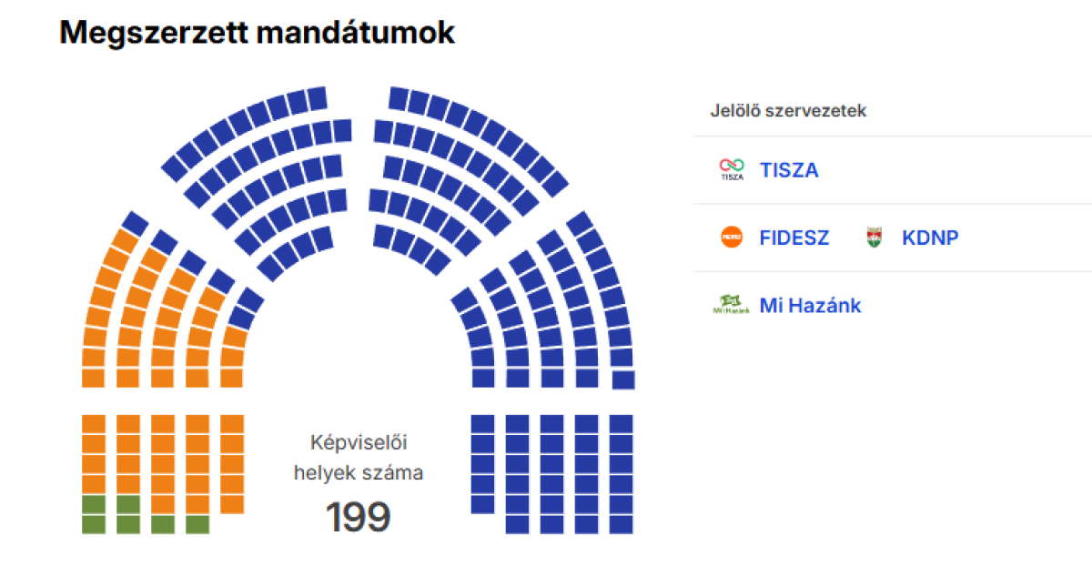 A Nemzeti Választási Iroda (NVI) adatai szerint a Tisza összesen 141 mandátumot szerzett a 199 fős Országgyűlésben. Ez nemcsak kényelmes többséget, hanem alkotmányozó, kétharmados felhatalmazást is jelent, hiszen a küszöb 133 mandátum.